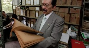 El abogado Martín Almada, en el denominado “Archivo del Terror”, miles de documentos de la dictadura que encontró ocultos en una dependencia policial en diciembre de 1992.