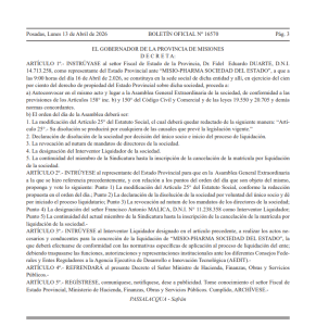 La decisión se formalizó con el Decreto N° 352/2026, por el cual el gobernador Hugo Passalacqua instruye al fiscal de Estado, Fidel Eduardo Duarte, a autoconvocar una Asamblea General Extraordinaria para el próximo 16 de abril, con el fin de tratar la disolución de la sociedad y dar inicio al proceso de liquidación.