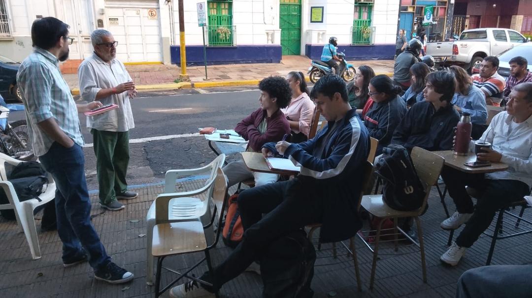 Clase pública frente al anexo de la Facultad de Humanidades, por calle San Lorenzo casi Mitre