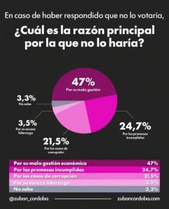 La situación económica aparece, asimismo, con un dato central y según el director de ZC, Gustavo Córdoba, la crisis comienza a impactar de lleno en las expectativas electorales del partido de los hermanos Milei y describe un escenario cada vez más adverso para el oficialismo.