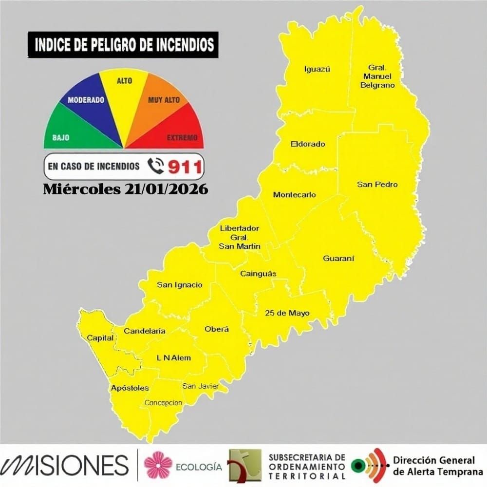 El índice de peligro de incendios oscila entre “muy alto” y “extremo” en Misiones