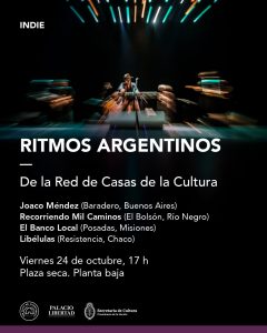 “Ritmos Argentinos” es un ciclo que se lleva adelante en la plaza Seca del Palacio Libertad (ex Centro Cultural Kirchner) y para esta ocasión, fue invitado El Banco Local, que tiene entre sus integrantes a Matías Macaya (voz) Matías Franco Meza (bajo y coros), Alejandro Nanio (saxo), Pablo Aguirre (percusión y batería) y Marcelo Kukczek (guitarra, cavaco y voz).