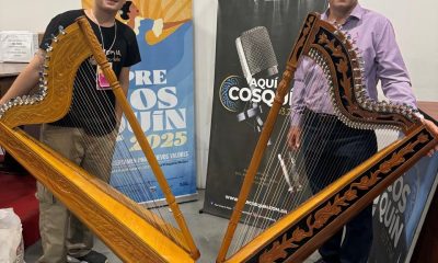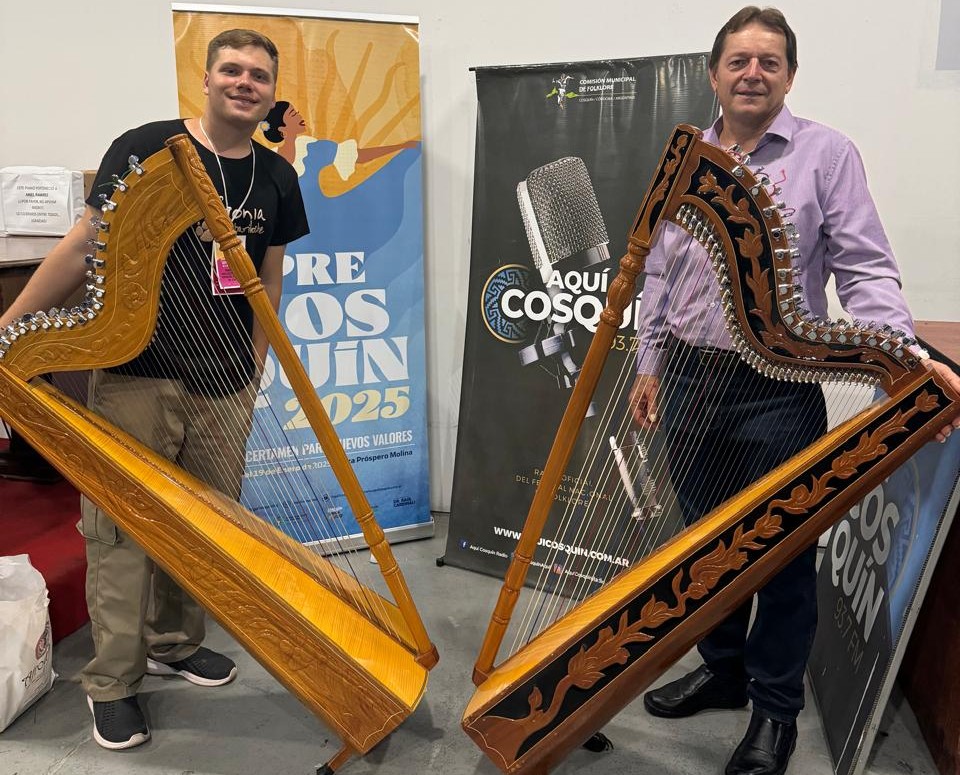 Los Kornuejczuk, padre e hijo: arpistas de San Pedro por un lugar en Cosquín