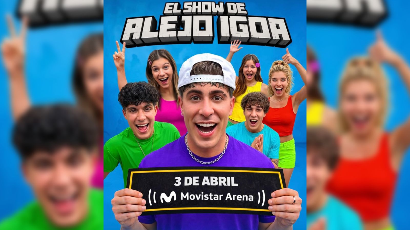 “El Show de Alejo Igoa” será acompañado por las hermanas Delfi y Valen Palladino, Miel Ámbar, Asbel Nazar y Kevin Benedetti, quienes aparecen junto al youtuber en el afiche promocional.