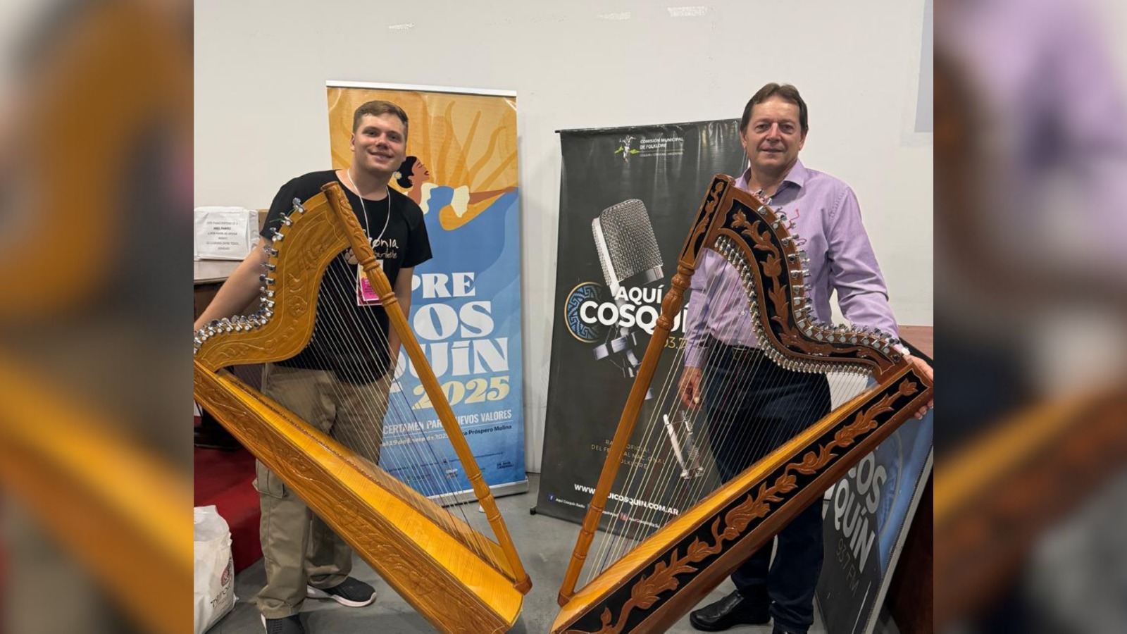 Los Kornuejczuk, padre e hijo: arpistas de San Pedro por un lugar en Cosquín