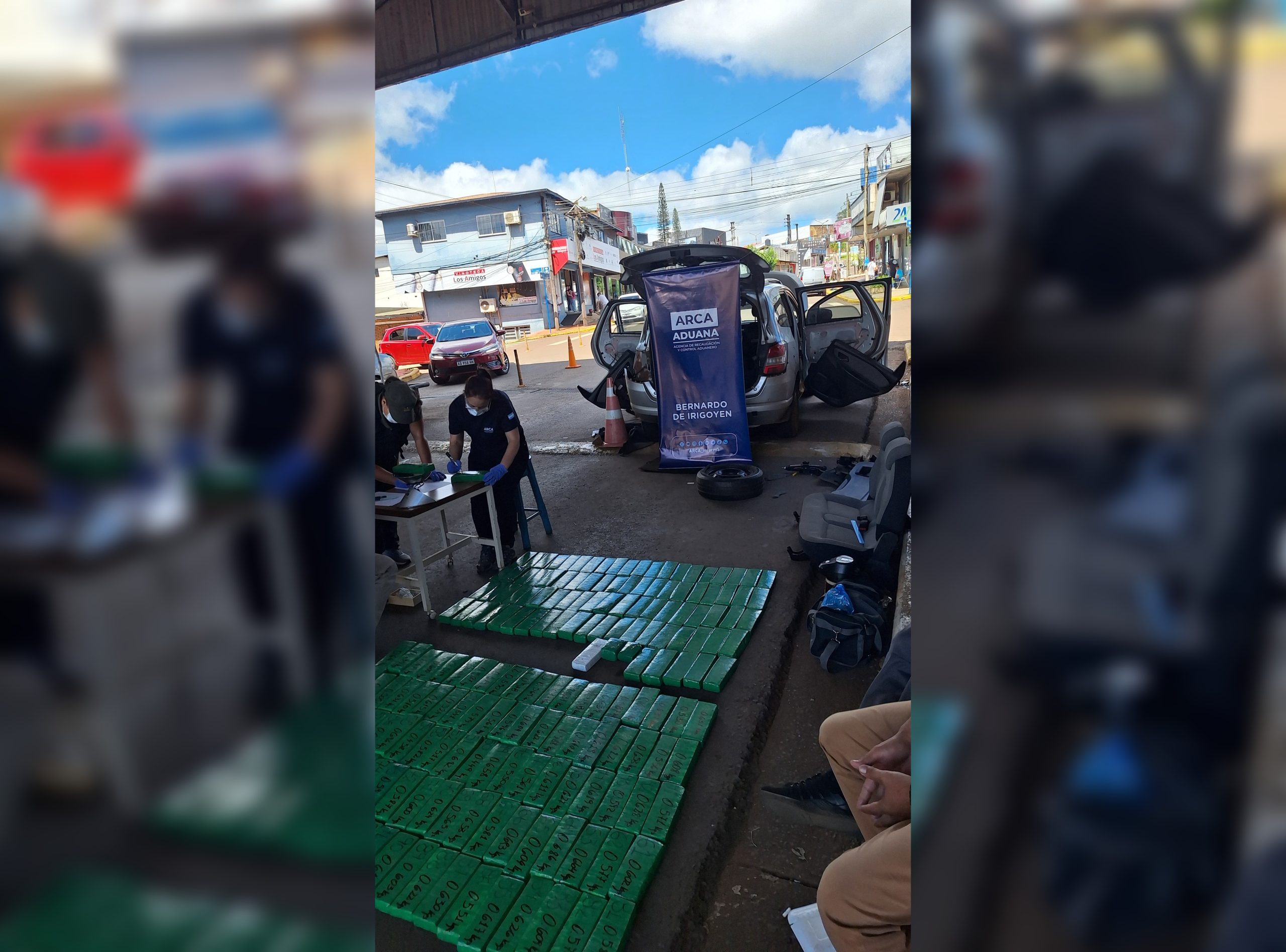 Dos hombres escaparon durante el control de Migraciones en el paso fronterizo de Bernardo de Irigoyen y abandonaron su auto cargado con más de 100 kilogramos de marihuana ocultos en doble fondos.