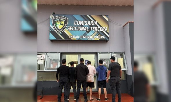 Empleados pertenecientes al sector de Servicios Públicos de la Municipalidad de la ciudad de Posadas realizan una protesta en el edificio comunal de la capital provincial....