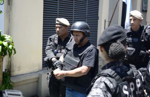 Tras la sentencia, los dos imputados condenados a prisión perpetua salieron esposados y atravesando un cordón de agentes penitenciarios hasta ingresar al móvil que los iba a trasladar a sus lugares de detención.