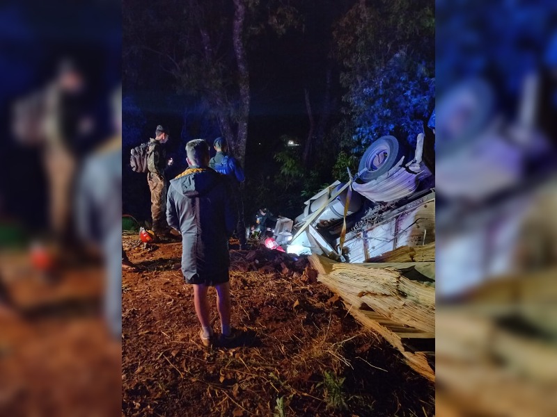 El hecho ocurrió cerca de las 23:45, cuando el vehículo, que transportaba láminas y circulaba en sentido Pozo Azul–Bernardo de Irigoyen, perdió el control por causas que aún se investigan, despistó y terminó volcado al costado de la ruta.