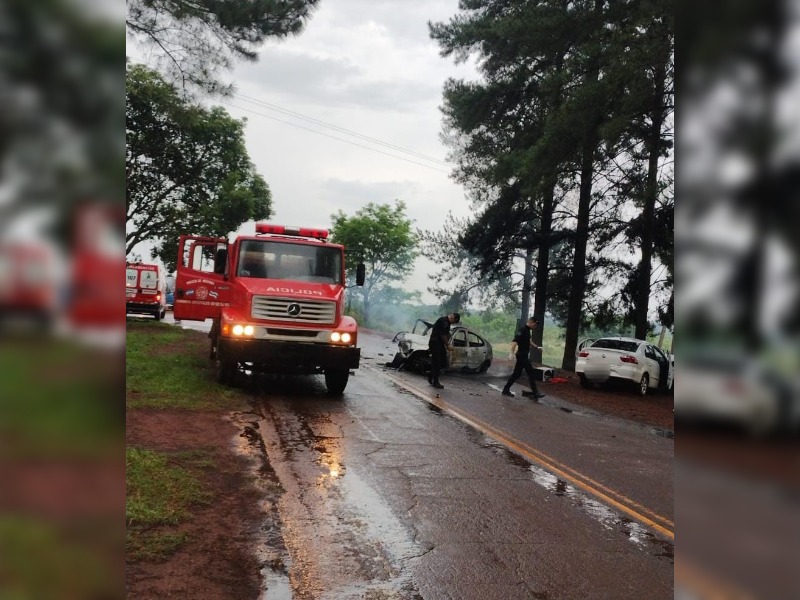 A raíz del violento choque, el Mégane se incendió de inmediato y su conductor perdió la vida en el lugar, mientras que el efectivo policial y sus acompañantes resultaron con lesiones de gravedad.