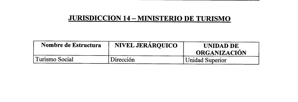 En lo que respecta al Ministerio de Turismo particularmente, la única área eliminada fue la Dirección de Turismo Social, cargo en el que Acosta fue nombrada por la resolución N° 219 el 16 de febrero de 2024.
