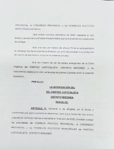 “Fue por esto que, luego de la asunción de Cristina Fernández de Kirchner (CFK) como presidenta del partido, el Consejo Nacional del PJ atendió los pedidos de regularización de un grupo de afiliados misioneros y se decidió la intervención del distrito Misiones”, recordó el dirigente peronista.