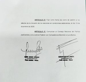 Los interventores del Partido Justicialista (PJ) Misiones, Gustavo Arrieta y Máximo Rodríguez, oficializaron este sábado la convocatoria a elecciones internas para el 19 de abril de 2026.