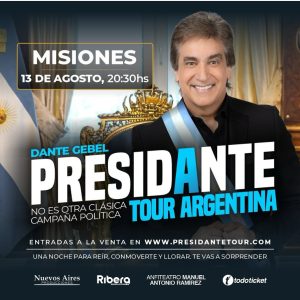 Casielles comentó que Gebel lleva a cabo “un montón de acciones solidarias” alrededor del mundo que “no publicita”. “Uno está acostumbrado a ver que cuando alguien dona algo se saca cien fotos y sube a las redes; y Dante hace donaciones millonarias en África, Argentina; construye casas en Cuba, o asiste a los inundados de Bahía Blanca, pero no lo publica”, señaló y aseguró que Gebel, incluso, “donó toda la plata de su gira ‘PresiDante’”.