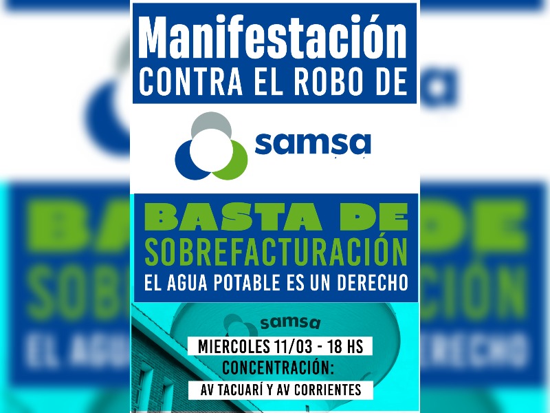 La concentración iniciará el miércoles a las 18 en la intersección de avenidas Tambor de Tacuarí y Corrientes para luego marchar hacia la sede de Samsa ubicada en avenida López y Planes casi Mitre.