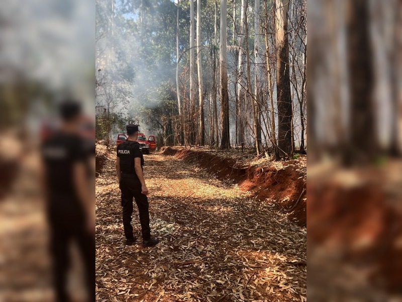 El hecho se registró cerca de las 15 en inmediaciones de la ruta 8, kilómetro 4 de Campo Grande, dentro de una chacra de la zona, donde los bomberos desplegaron tareas para contener, controlar y extinguir el principio de incendio forestal.