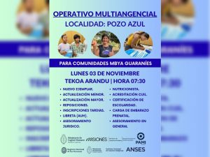 El Instituto Nacional de Asuntos Indígenas y la Dirección Provincial de Asuntos Guaraníes desarrollarán un operativo multiagencial en comunidades mbya guaraníes de distintas localidades misioneras del 3 al 7 de noviembre, con el objetivo de “acercar servicios y garantizar derechos básicos”.