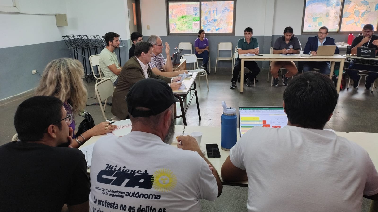 La convocatoria inició alrededor de las 10 con referentes de la Unión de Trabajadores de la Educación de Misiones (Utem), Autoconvocados 100%, la Unión de Docentes Nueva Argentina de Misiones (Udnam), el Movimiento Pedagógico de Liberación (MPL) y la Central de Trabajadores de la Argentina (CTA), entre otros gremios que se reunieron con Dante Genesini, coordinador provincial de planeamiento educativo.