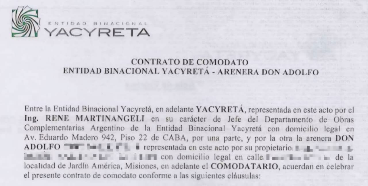 La filtración de un contrato entre la EBY y la empresa Arenera “Don Adolfo” -celebrado en el mes de julio de este año-, devela dos aspectos “nunca antes observados”, según afirmaron coincidentemente fuentes consultadas en la hidroeléctrica y empresarios areneros.